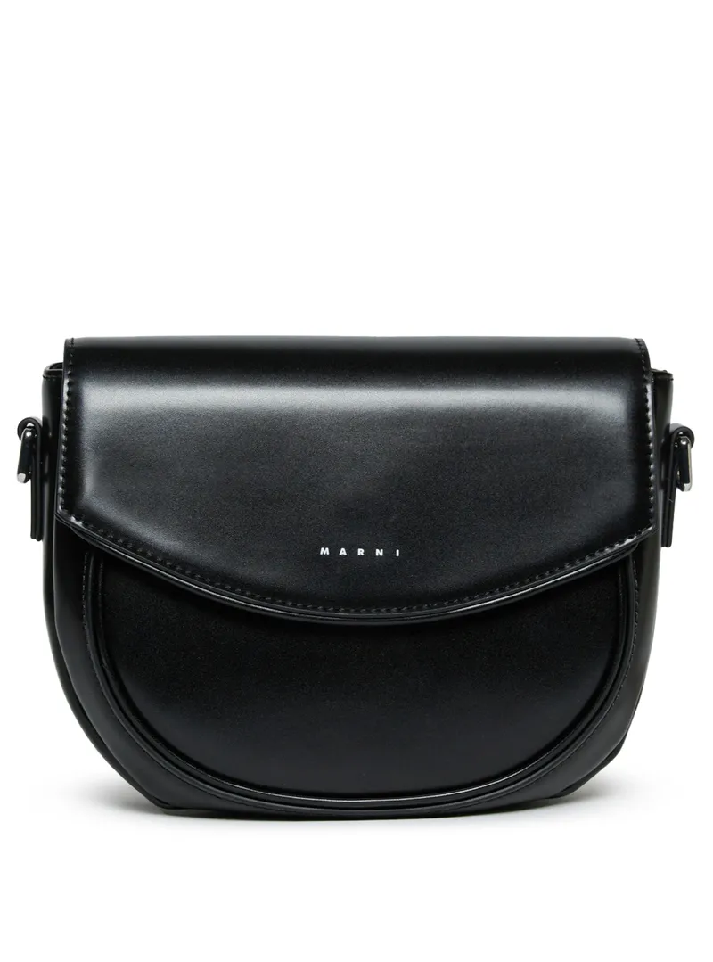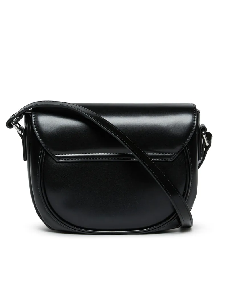 A compact and versatile eco-leather bag with contrast micro logo and adjustable strap