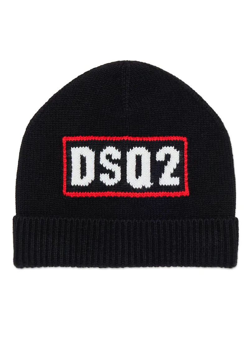 Dsquared2 beanie with ribbed cuff and jacquard logo.