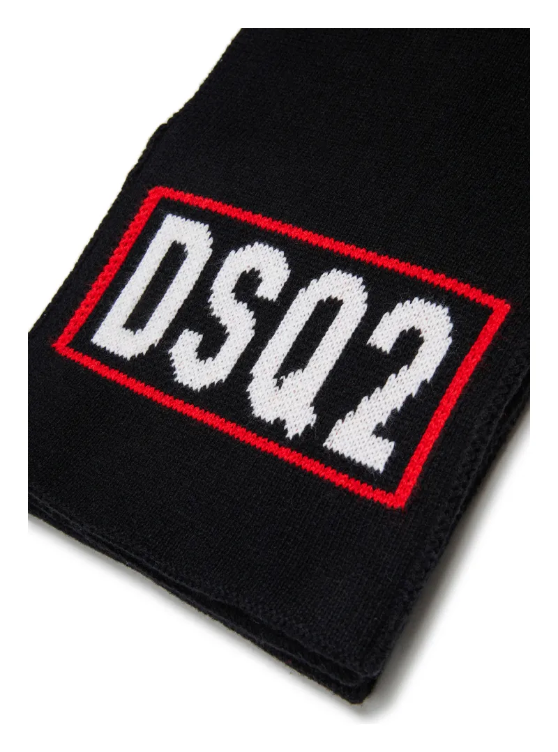 Dsquared2 scarf with contrasting jacquard logo for a bold finishing touch.