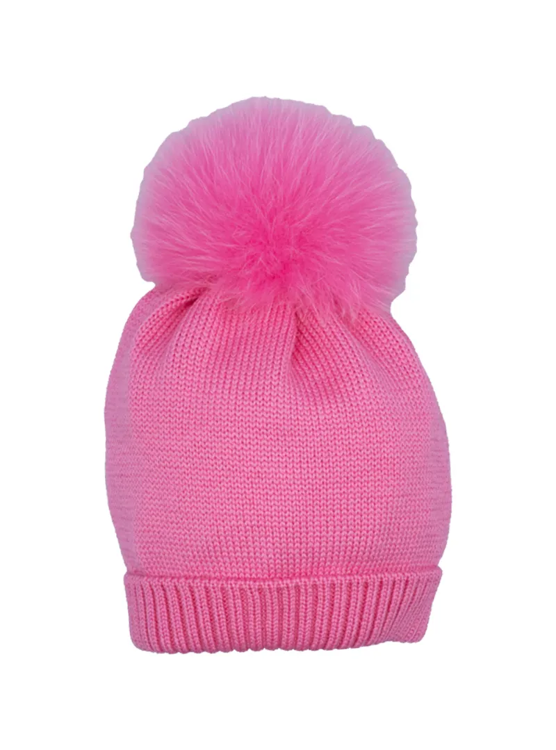 Catya smooth-knit beanie with fox fur pom-pom: a refined winter essential crafted from premium fibers and elevated with elegant details.
