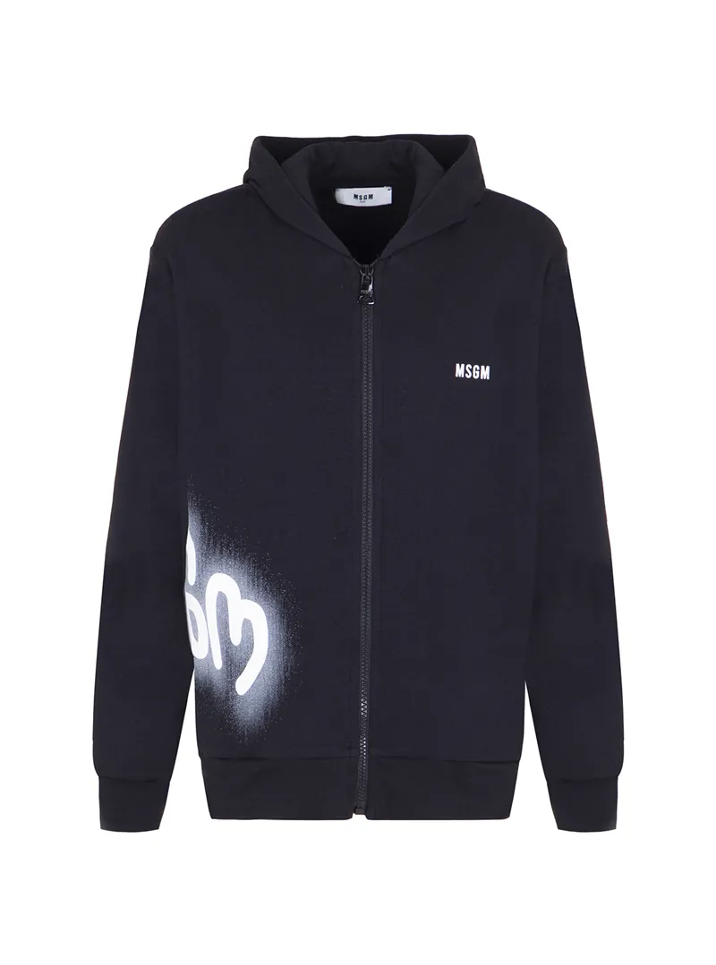 SWEATSHIRT WITH HOOD AND ZIP BLACK - MSGM KIDS WITH SIDE LOGO 100% COTTON