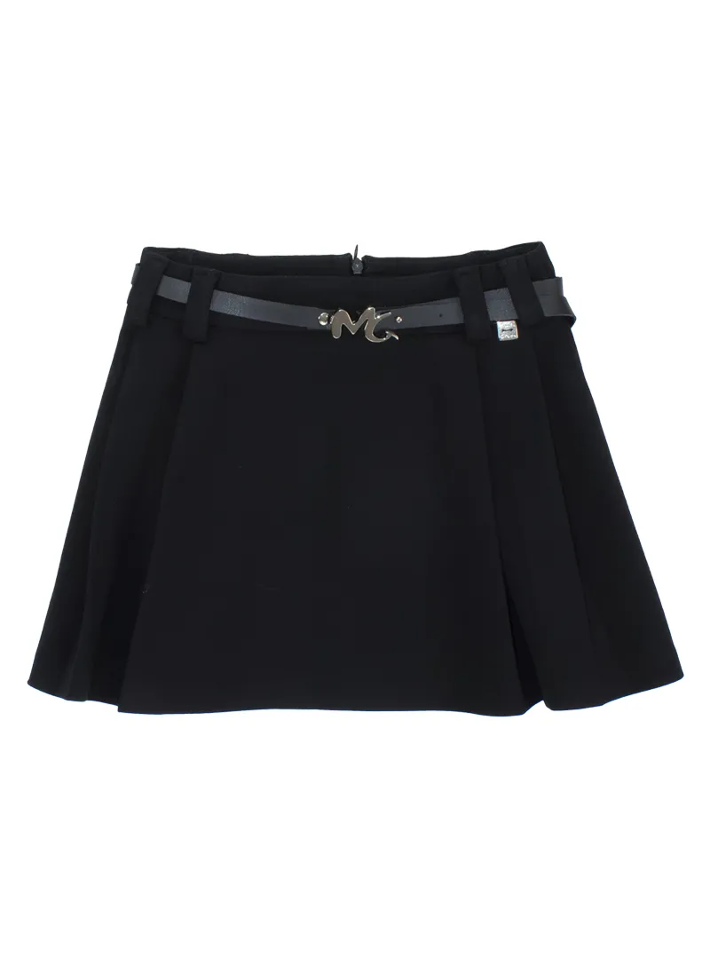 A refined and comfortable skirt, featuring a belt that enhances the silhouette and side pleats that add a dynamic touch to the design.
