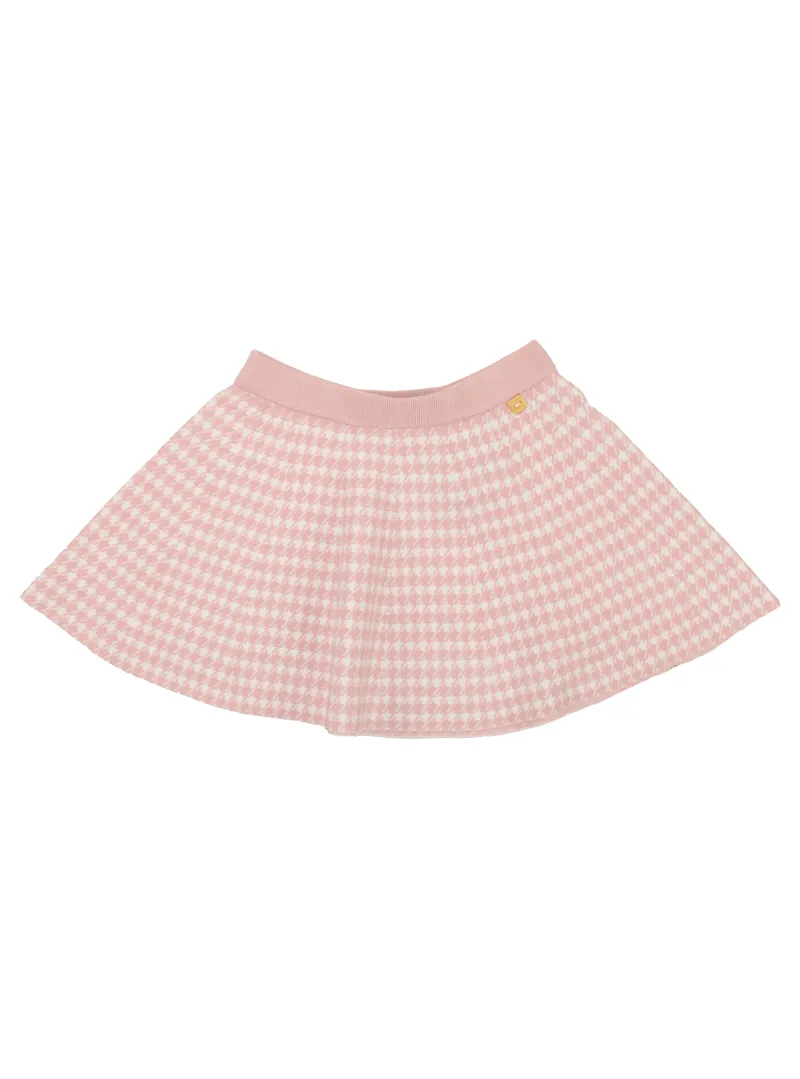 A skirt with timeless elegance, featuring a pied de poule pattern and a ribbed elastic waistband for a comfortable yet sophisticated fit.