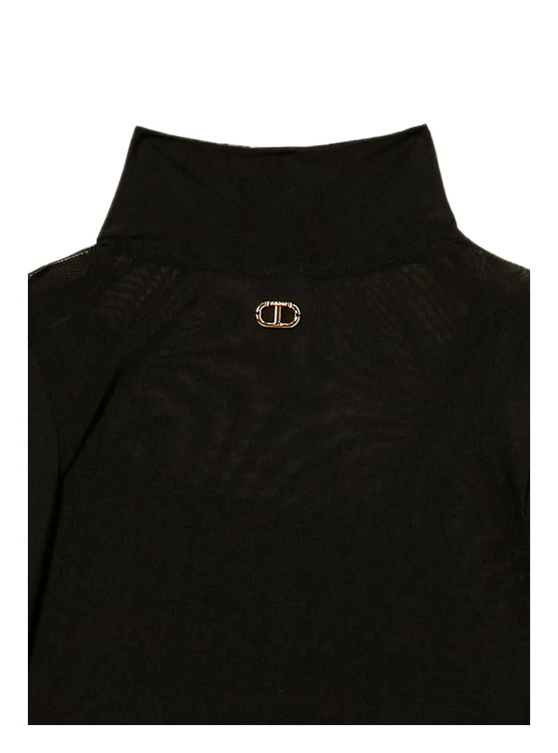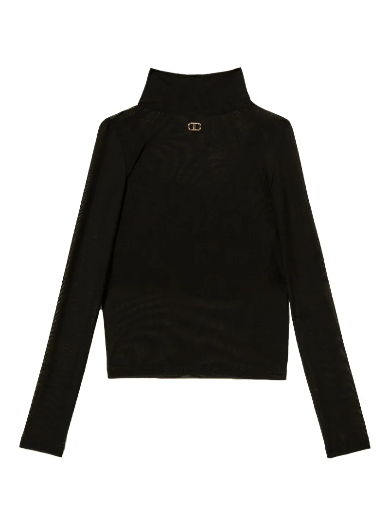 - Sheer mock neck tulle top for a sophisticated look