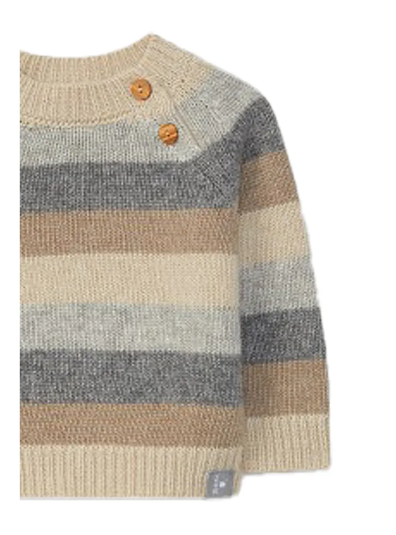 Snug knitted jumper, warm and soft, with wooden button front fastening up to 18 months.