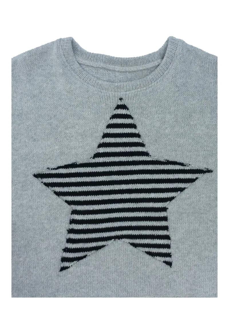 Stresa knitwear with raw-cut trims on cuffs and hem, raw-cut star application and grosgrain micro logo on the left sleeve.