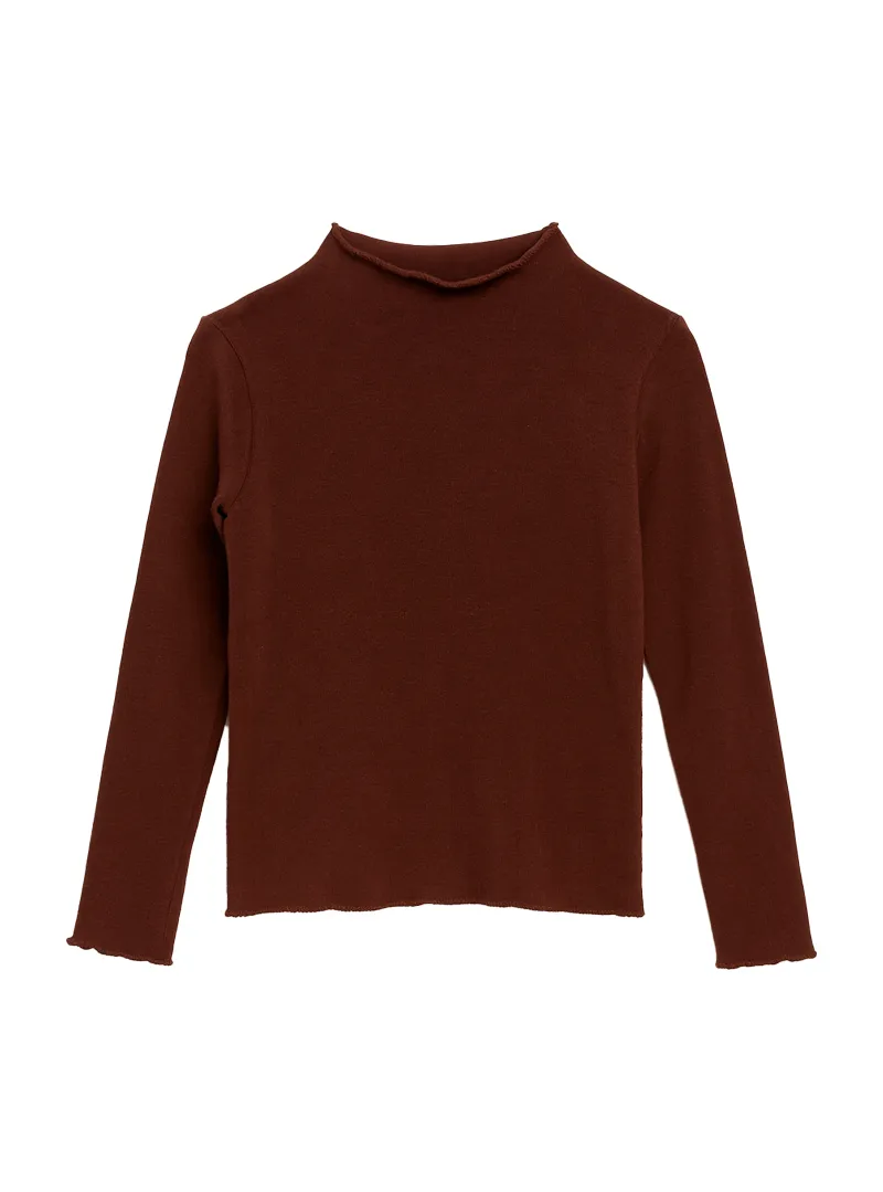 Warm cotton top with high collar, warm and comfortable for casual and refined looks on cooler days.