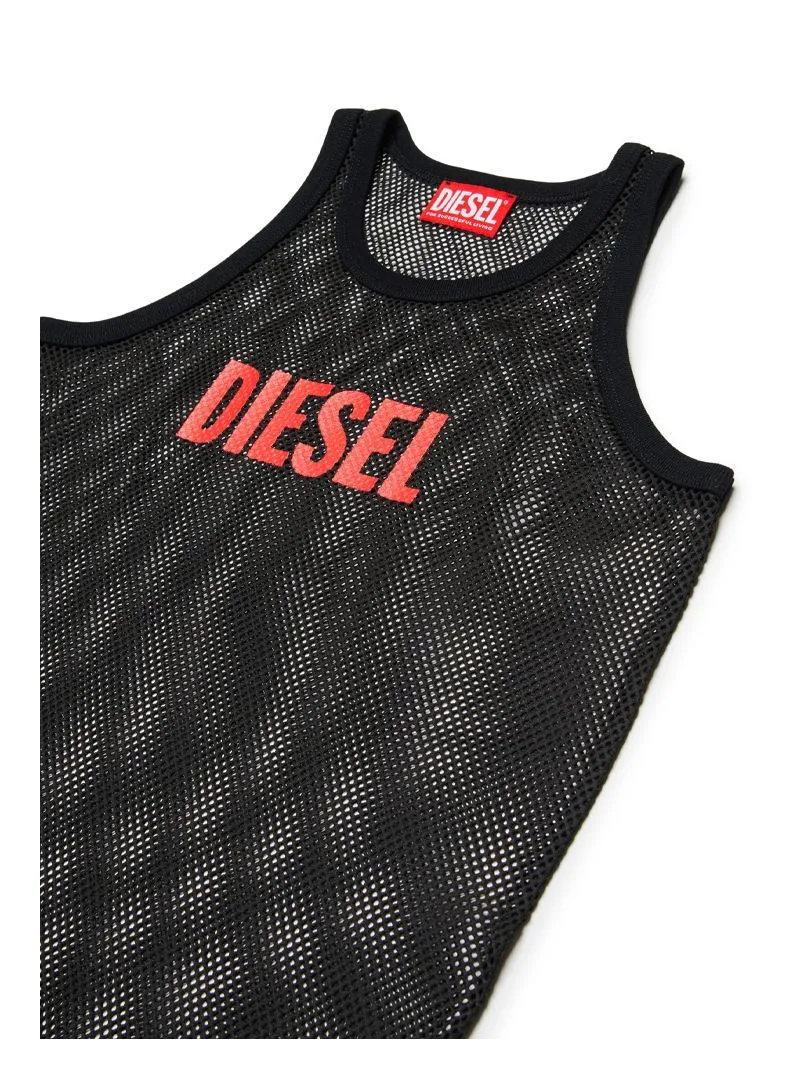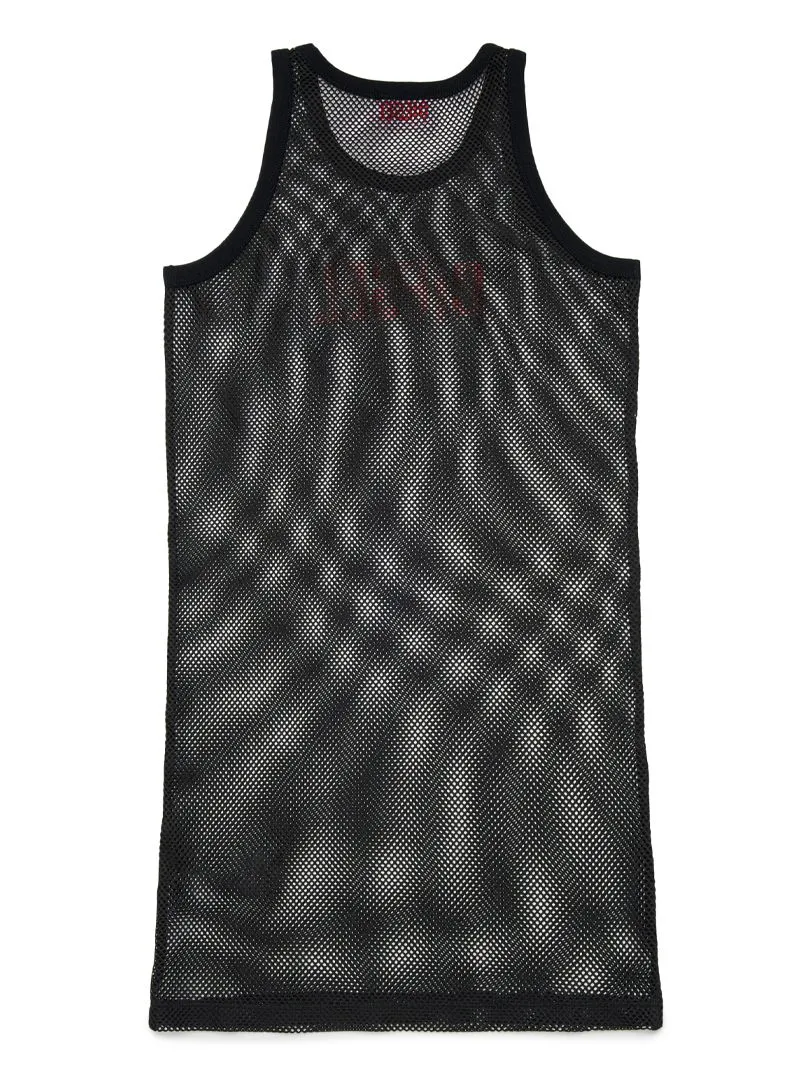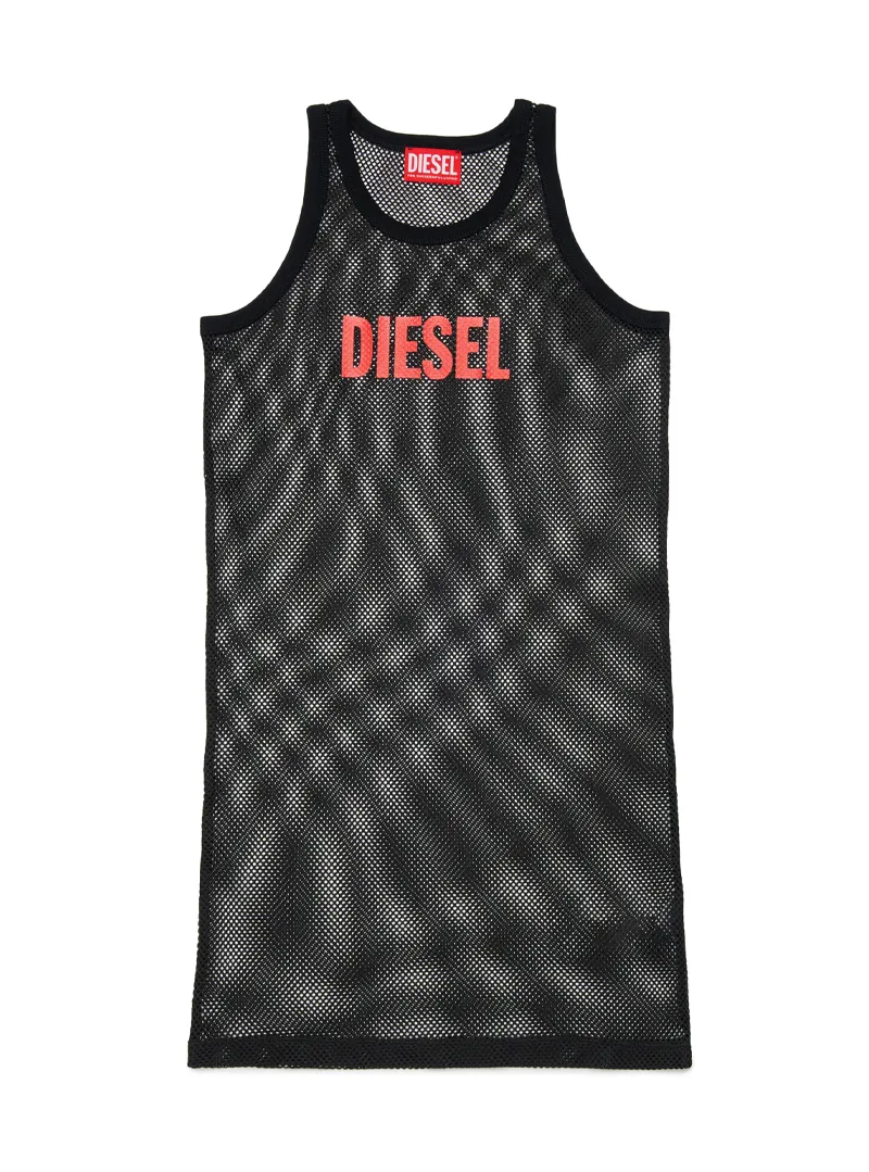 Diesel mesh cover-up dress with contrast logo on the front.