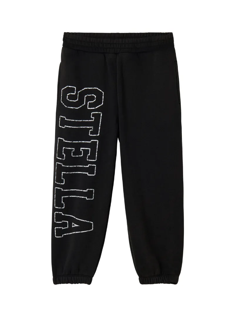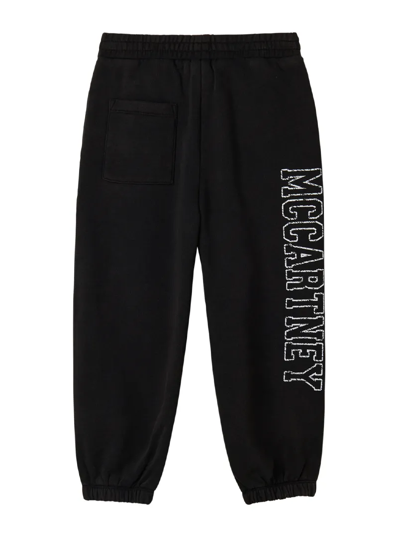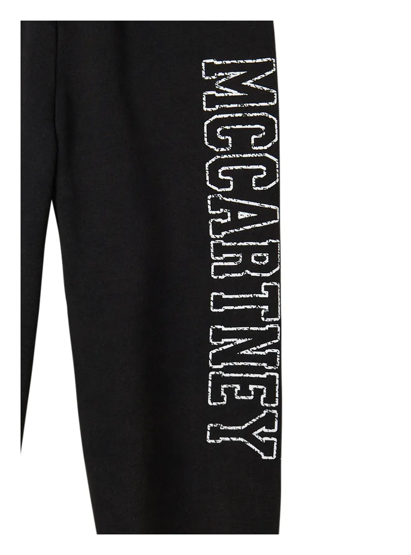 A Stella McCartney sweatshirt pant featuring two welt pockets and a logo print on the right leg, finished with an elastic waistband and hem for comfort and style.