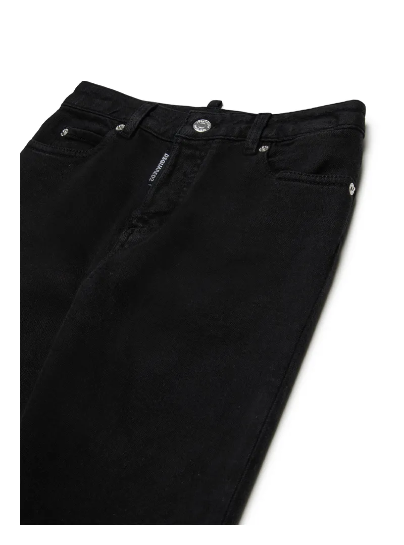 Dsquared2 jeans in bull stretch denim with comfortable fit and bolt button closure.