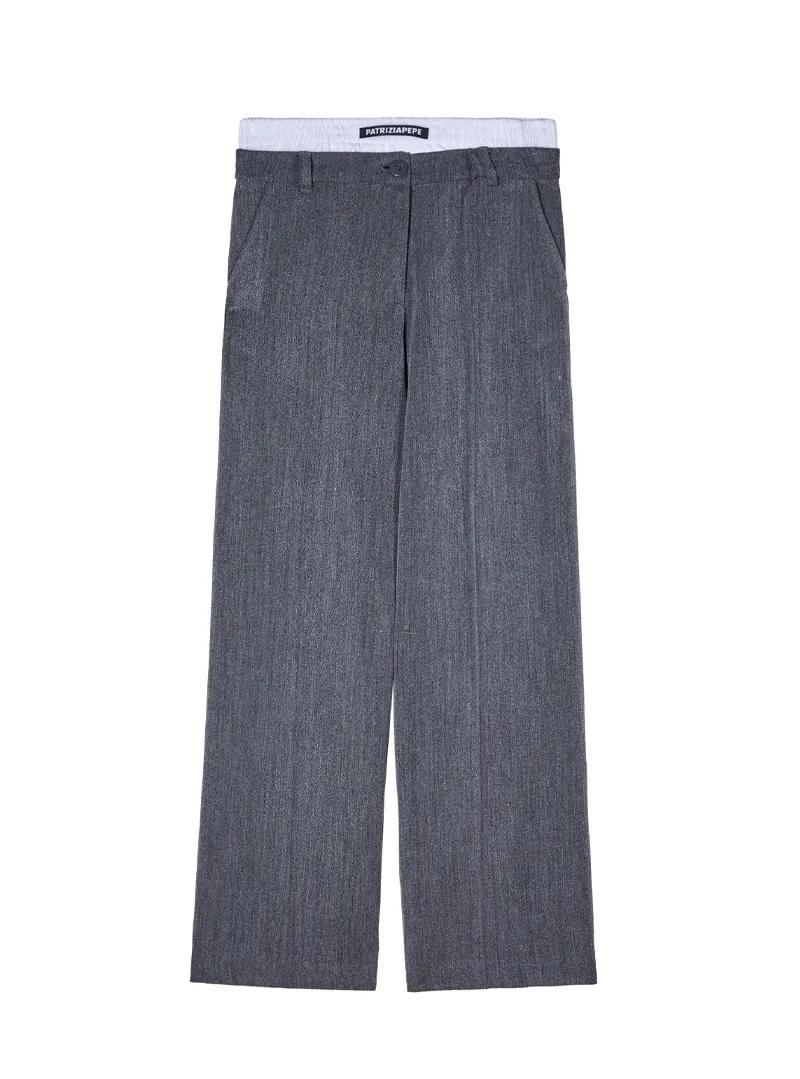 Casual yet elegant, the wool canvas trousers by Patrizia Pepe offer a fluid silhouette and refined details for a sophisticated look.