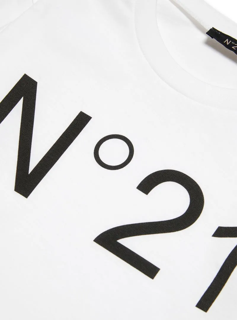 The White Long-Sleeve T-Shirt by N.21 Kids in 100% cotton is perfect for a casual look with a touch of style. The contrasting logo print provides a distinctive detail.
