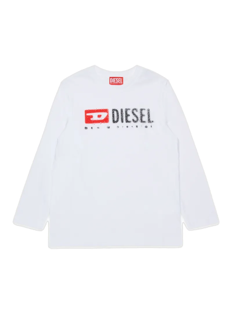 Diesel long-sleeve T-shirt in 100% cotton with front logo print, featuring a straight cut and everyday versatility.