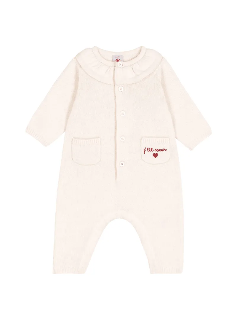The Petit Bateau knitted jumpsuit is both elegant and cozy, with embroidered details and warm materials ideal for delicate baby skin.