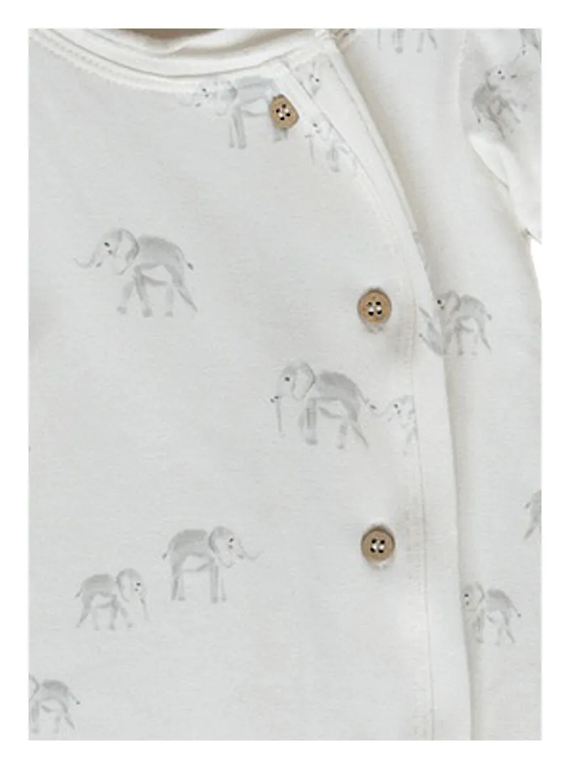 BOSCO STRETCH SWEATSHIRT ROMPER ELEPHANT WHITE - BAMBOOM SIDE OPENING WITH FEET