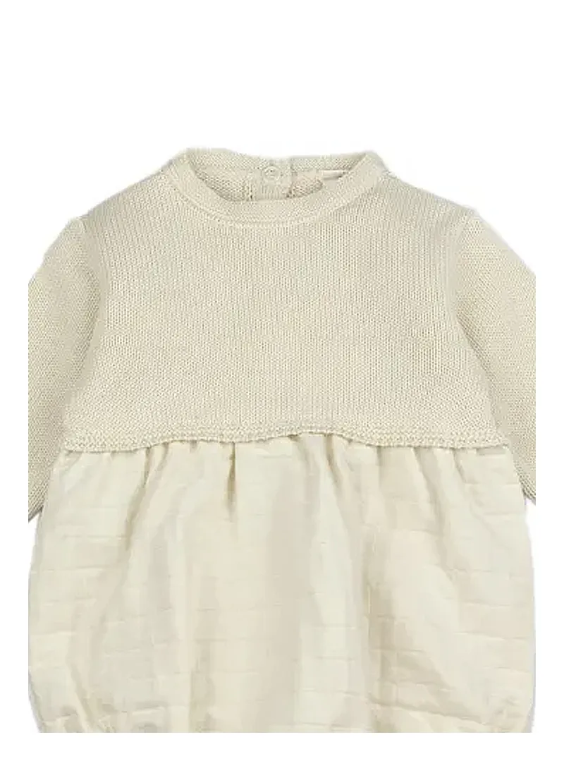 Short-legged romper in double tubular fabric and cotton yarn, with back and bottom openings for easy and comfortable changes.