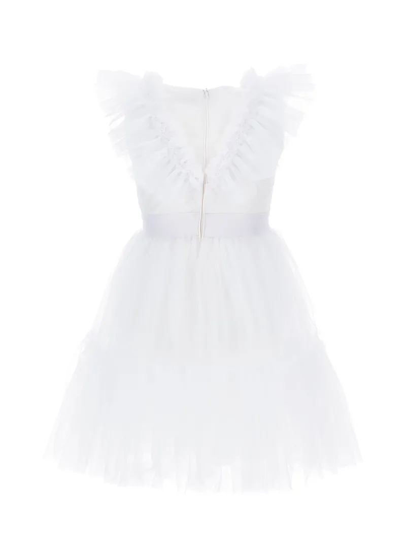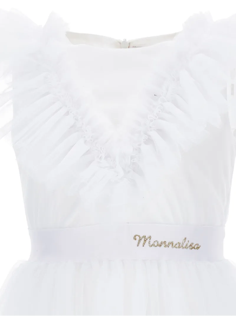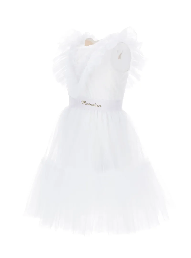 ABITO SOFIA ROUCHES TULLE CON CINTA ELASTICO IN VITA Bianco - Monnalisa - TULLE MANO SETA