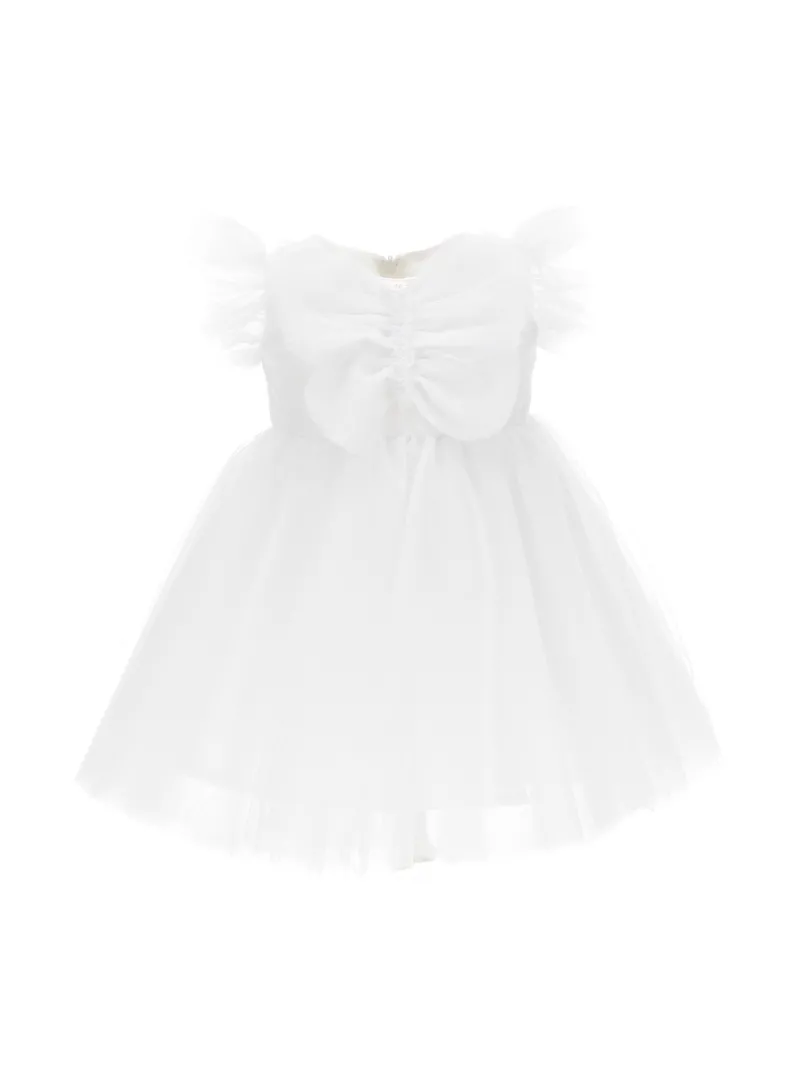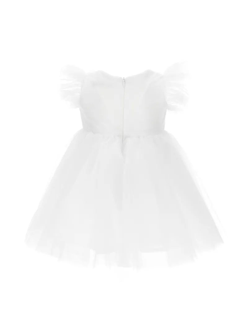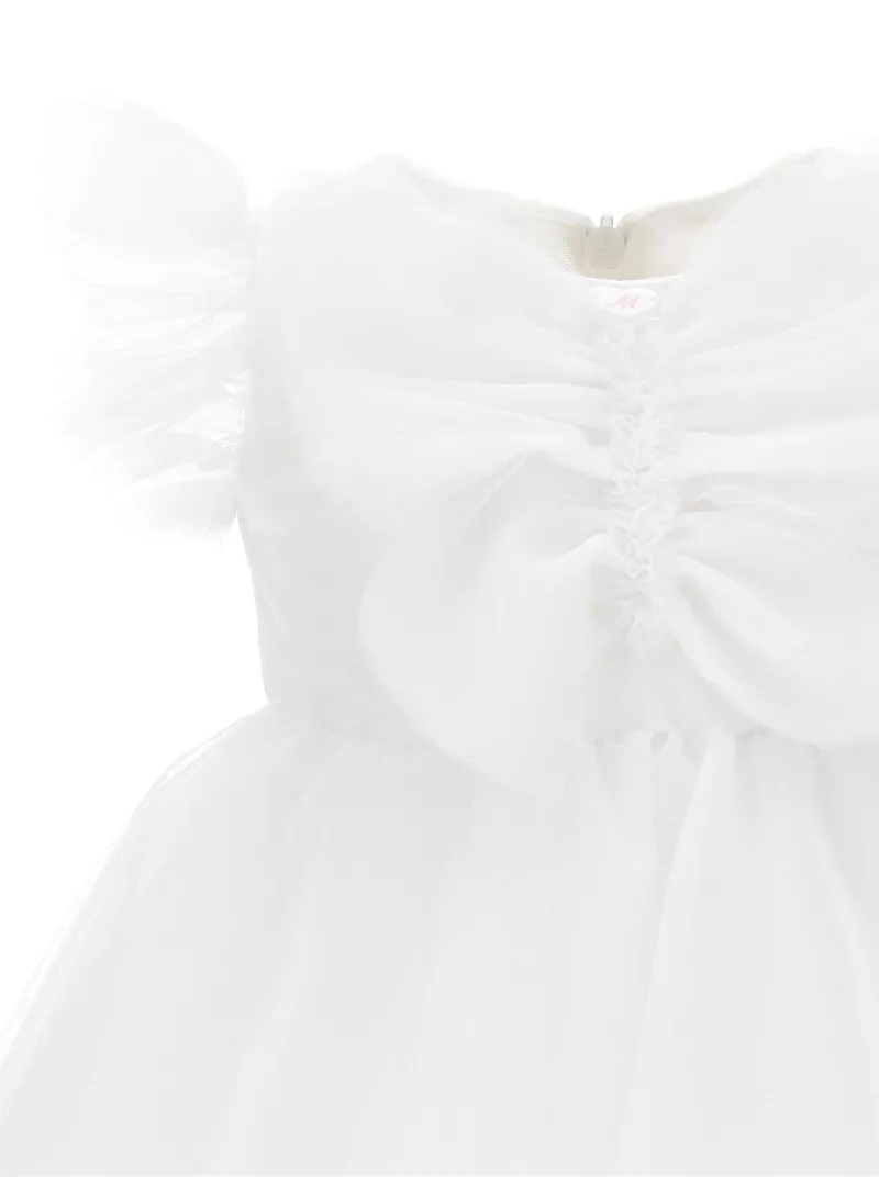 ABITO FARFALLA TULLE Bianco - Monnalisa - Tessuto principale: 95% Cotone, 5% Elastan Tessuto secondario: 100% Poliestere Tulle: 100% Poliammide