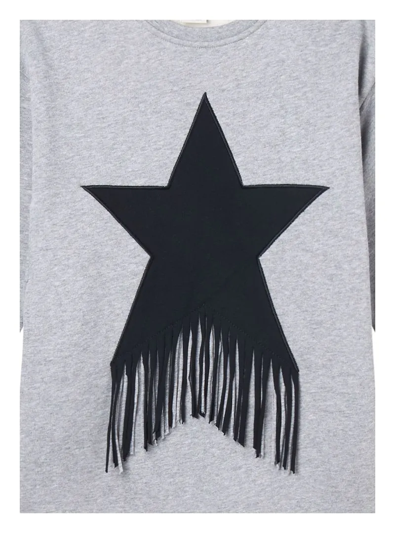 Un abito felpa di Stella McCartney dal design unico, arricchito da un'applicazione a forma di stella e dettagli con frange.