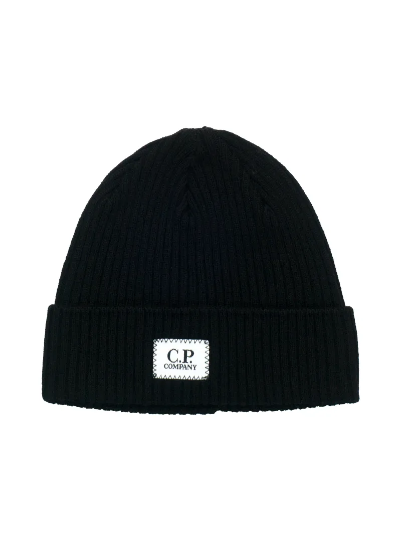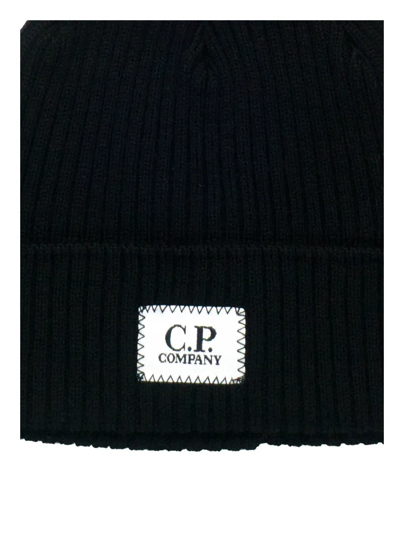 Cuffia a coste CP Company con patch logo ricamata a contrasto sul fronte, realizzata in 100% lana.