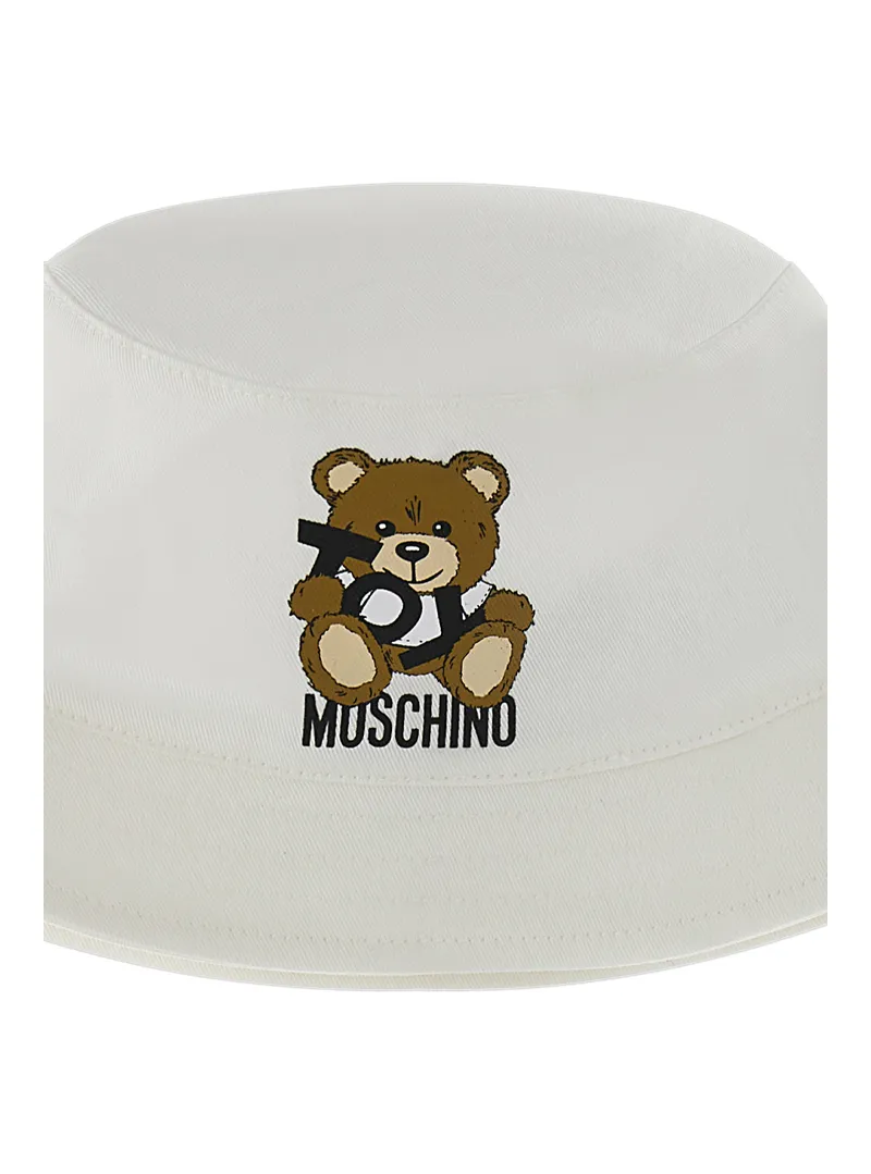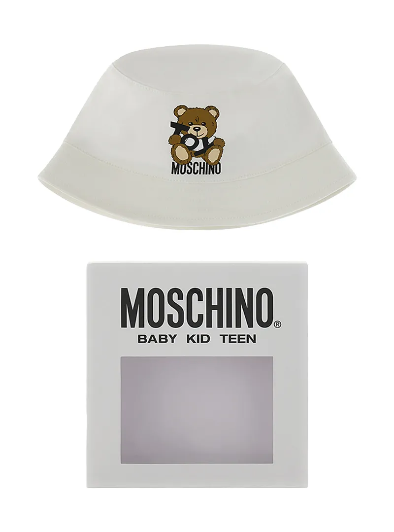 Cappello cloche con stampa logo e orsetto, perfetto per un look dolce e casual.