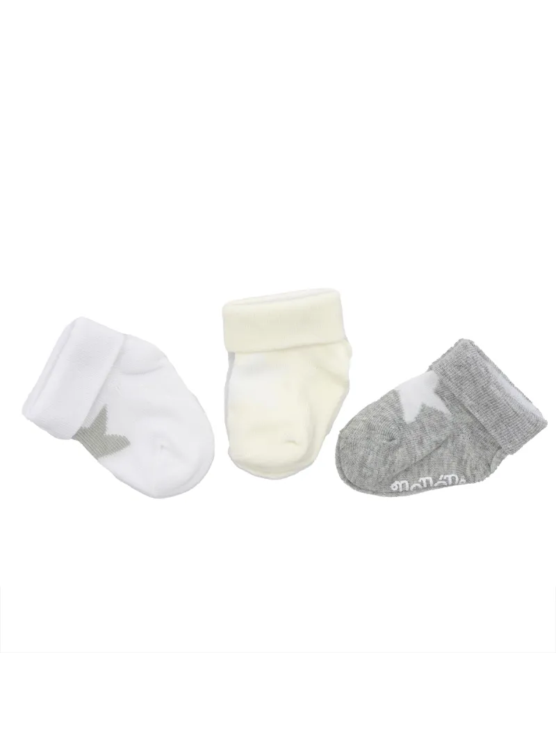 SET CALZINI 3 PAIA Multicol - NANAN - COTONE ELASTICIZZATO CON STELLE - colori bianco, grigio e rosa.