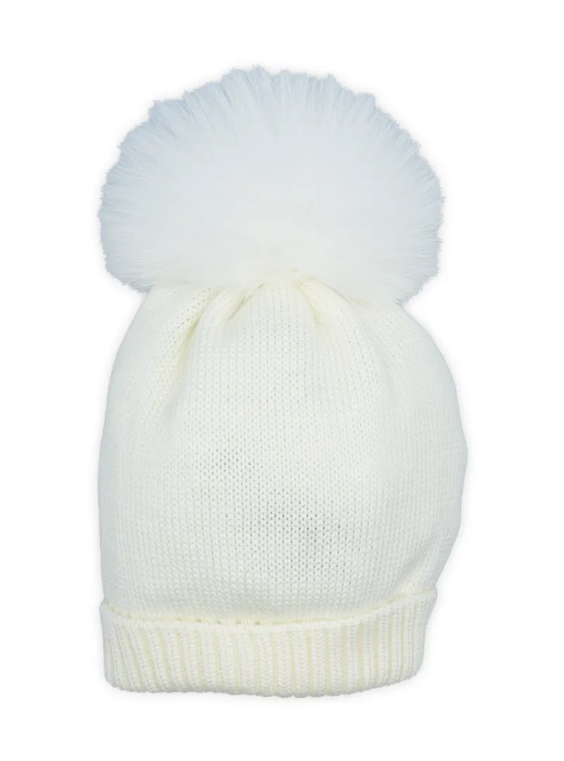 Calotta rasata con ponpon di volpe firmata Catya: eleganza minimale e materiali pregiati si uniscono in un accessorio invernale dallo stile raffinato.