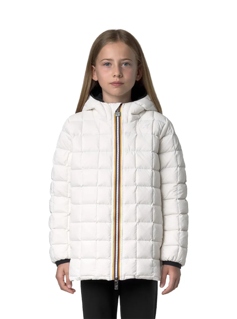 Giubbotto double piuma P. Sophie di K-Way bambino: praticità e stile in un capo reversibile bicolore con imbottitura in piuma.