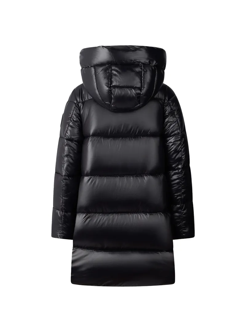 Il piumino Millie è pensato per offrire calore e protezione con una vestibilità lunga, dettagli tono su tono e un design pratico e raffinato.