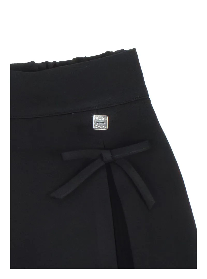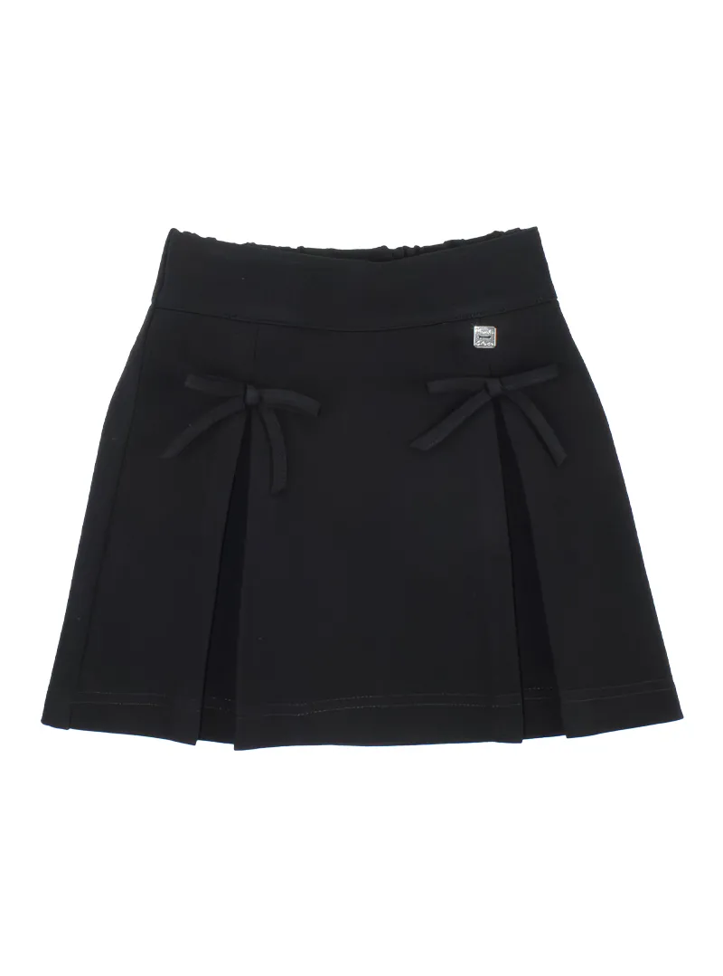 Una gonna Punto Milano raffinata e versatile, con fiocchetti decorativi, vita elasticizzata e due pences per una vestibilità elegante e comoda.