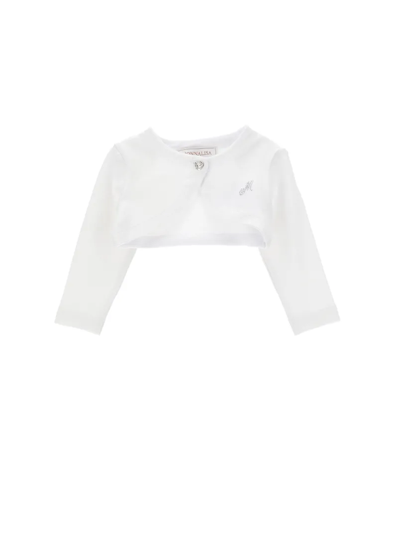 CARDIGAN SCALDA CUORE RASATO CREPE Bianco - Monnalisa - Tessuto principale: 100% Poliestere Fodera principale: 100% Cotone Applicazioni: 100% Poliestere