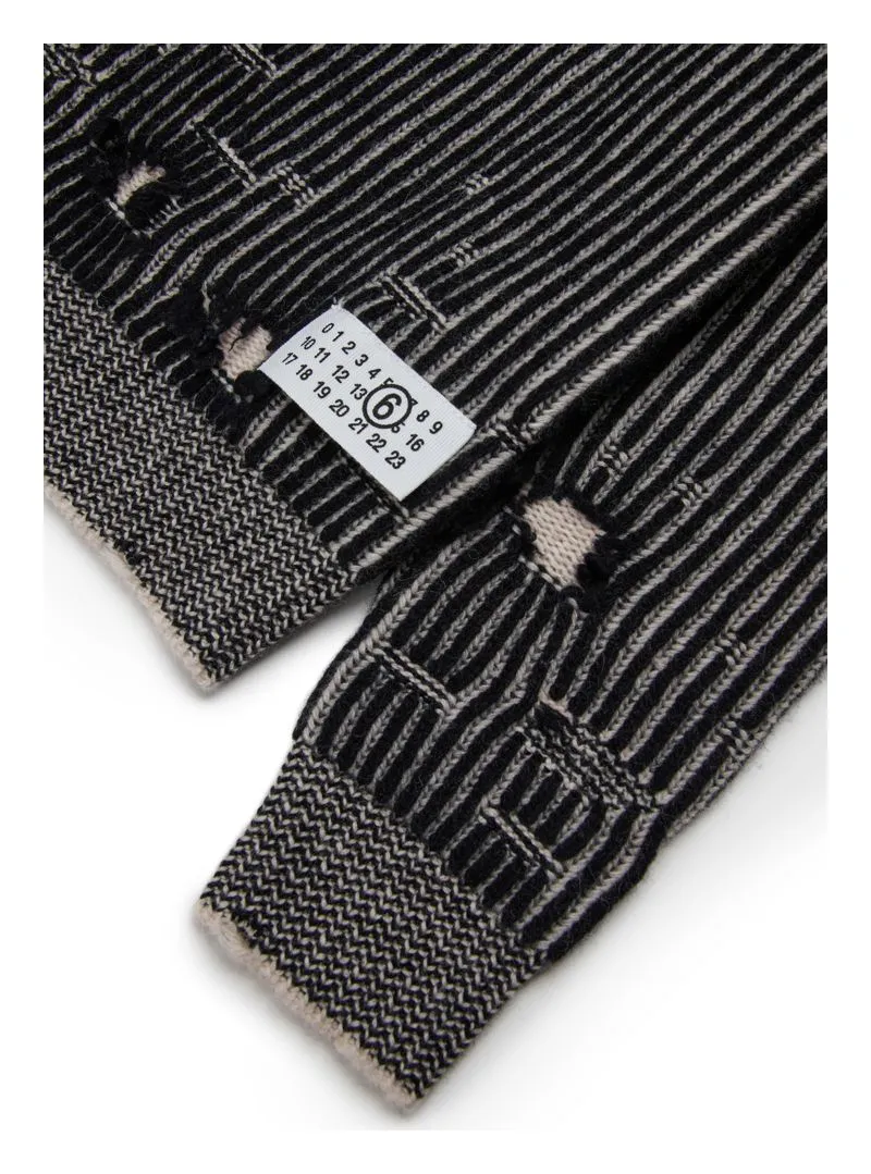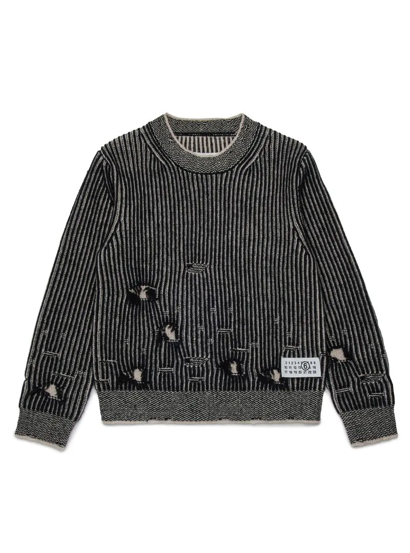 Maglia MM6 Kid a coste effetto bicolore con micro strappi e etichetta logo numerico.