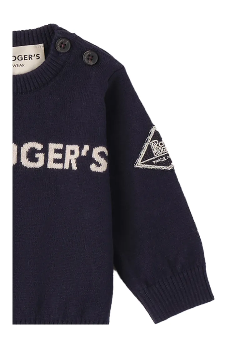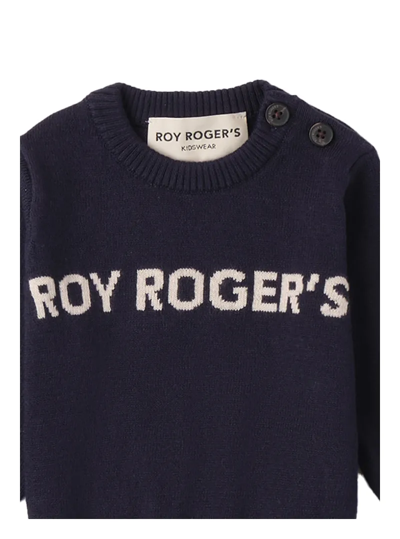 Maglia Roy Rogers bambino in misto lana e cotone con logo a contrasto, apertura con bottoni sulla spalla e tab sulla manica.
