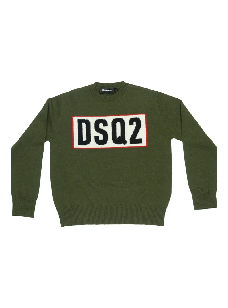 Maglia Dsquared2 rasata con lavorazione jacquard logo a contrasto sul davanti.