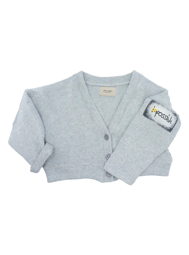 Cardigan Cambridge dal taglio cropped con chiusura a 3 bottoni in tinta e dettagli in costina su collo, polsi e fondo.