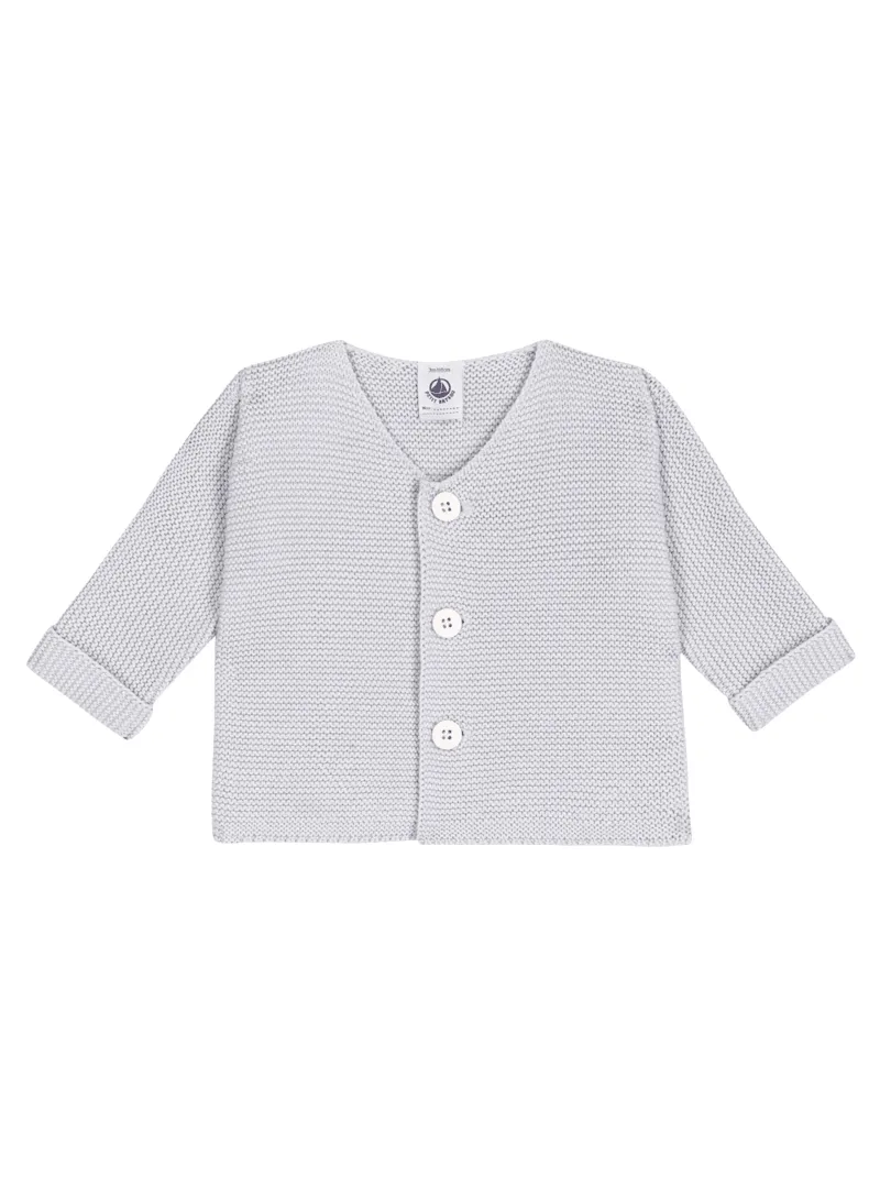 Cardigan Filo 100% cotone apertura 3 bottoni a contrasto lavorazione grana di riso Oeko-Tex, Organic
