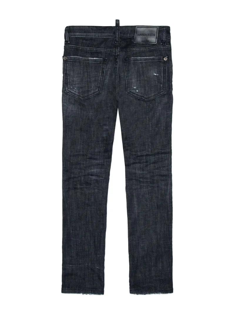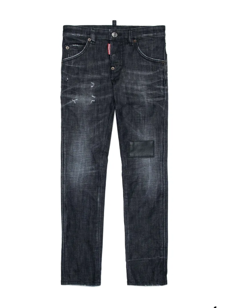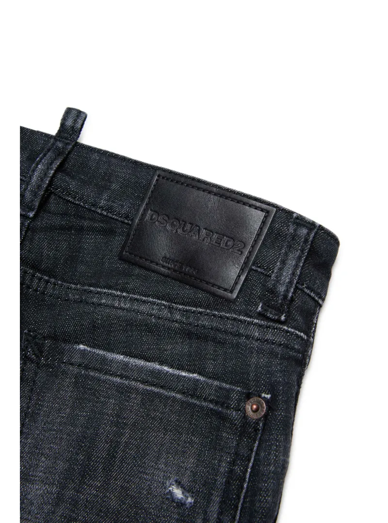 Pantalone nero DSQUARED in denim elasticizzato con 5 tasche, per un look casual e moderno.
