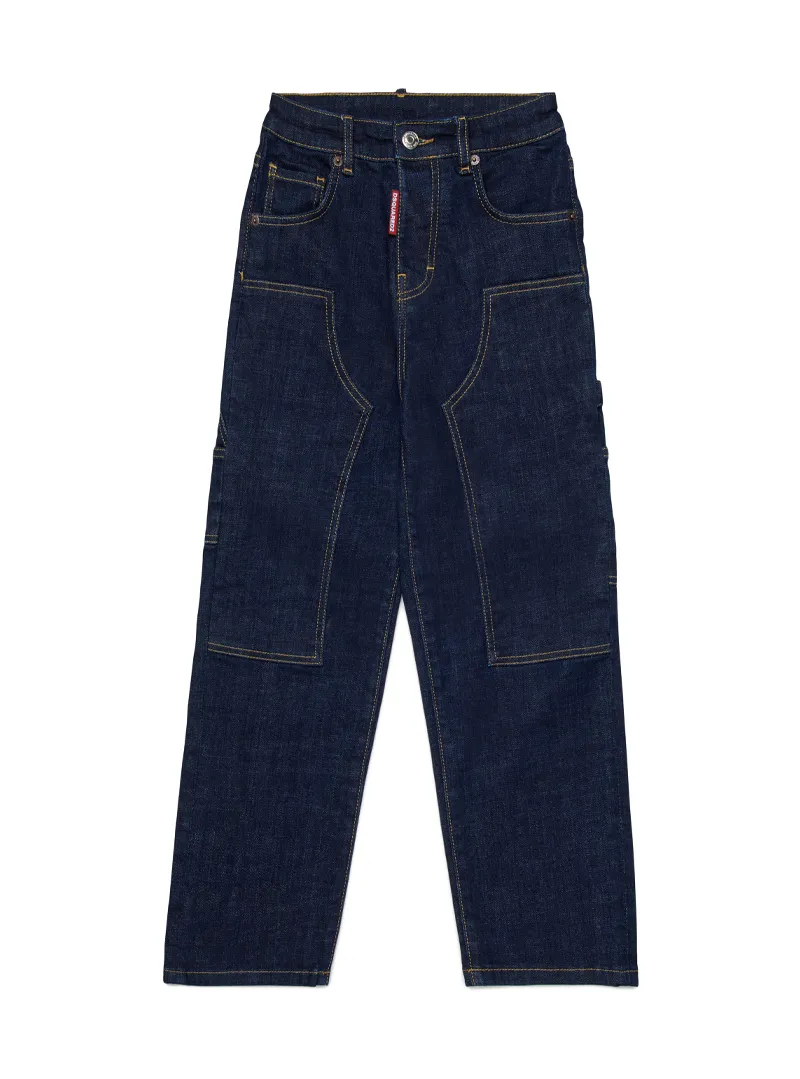 Pantalone jeans Dsquared2 con rotture frontali ricucite per uno stile urbano e vissuto.
