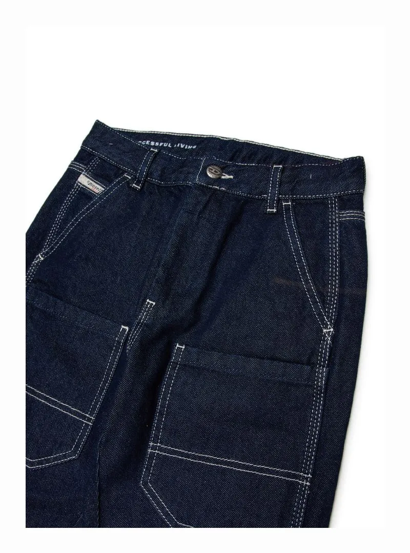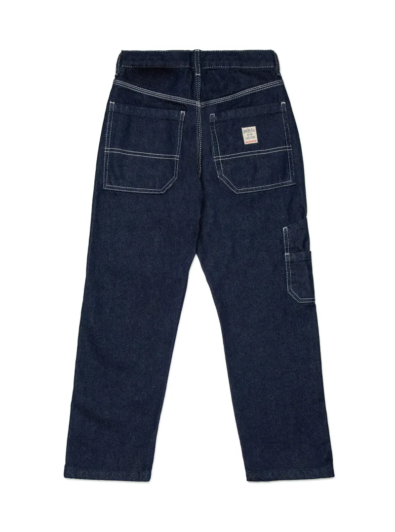 Pantalone jeans con cuciture bianche a contrasto e 5 tasche, comodo e stiloso per tutti i giorni.