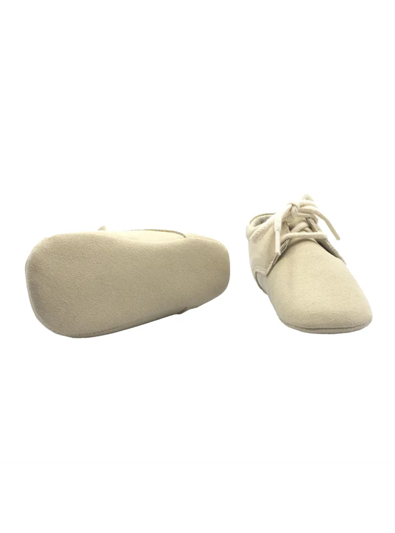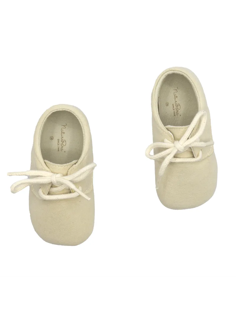 Scarpine stringate neonato in finto camoscio con fondo morbido Ecru - Natura Pura