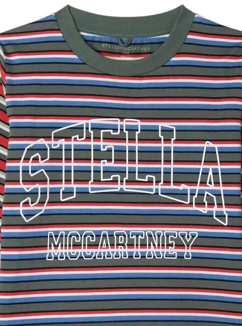 Una T-shirt rigata di Stella McCartney con stampa logo sul davanti, maniche a contrasto e polsini a contrasto per un look audace e dinamico.