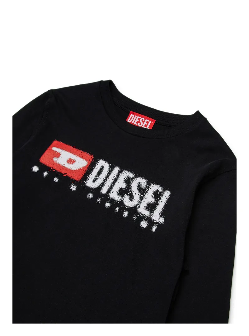 T-shirt Diesel a manica lunga in 100% cotone con stampa logo frontale, dal taglio dritto e versatile, ideale per ogni giorno.